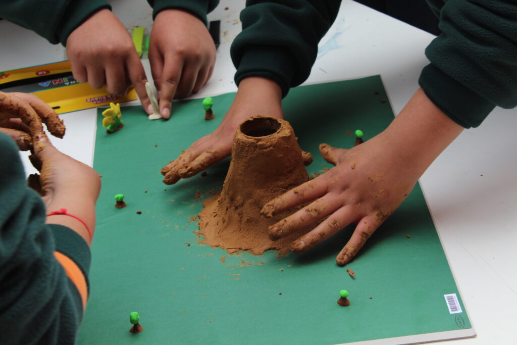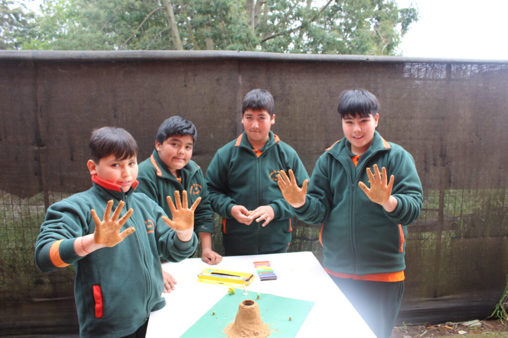 La participación de los jóvenes fue destacable, ya que formularon preguntas y demostraron una gran curiosidad por los fenómenos naturales. Para hacer la experiencia aún más enriquecedora, los estudiantes pusieron en práctica lo aprendido construyendo sus propios volcanes con greda y otros elementos, lo que permitió realizar una simulación de erupciones tanto efusivas como explosivas. Esta actividad les permitió comprender de manera tangible los procesos volcánicos.